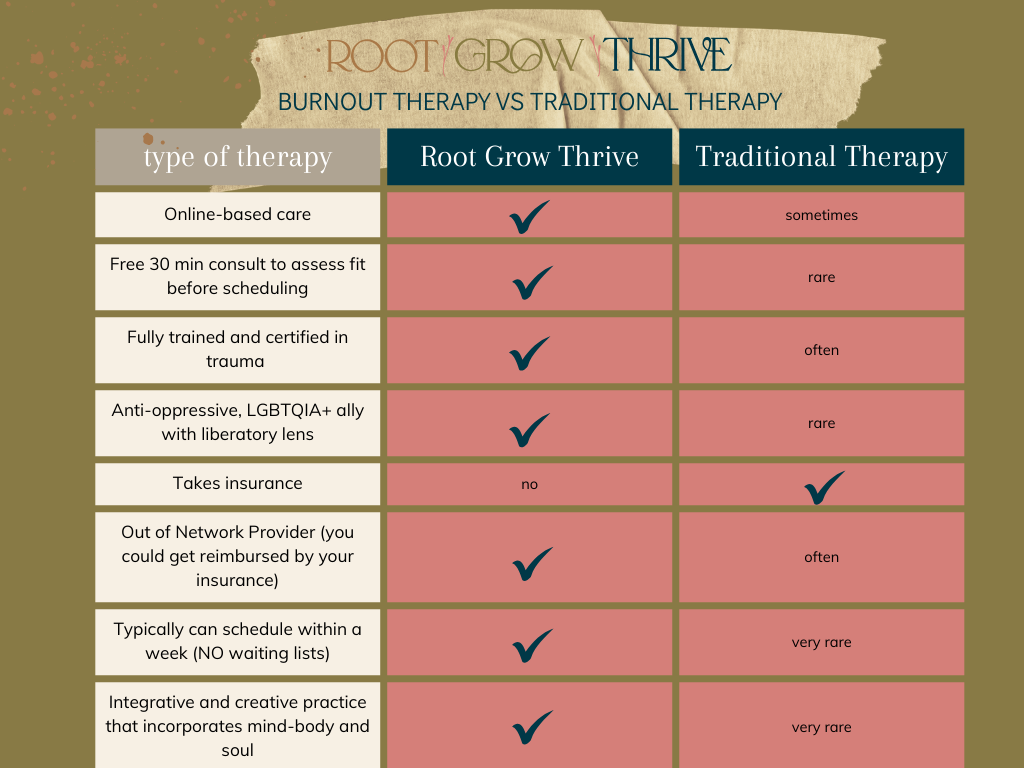 Root Grow Thrive is not just the name of my practice, it is the framework for the offerings that I share for you--where I can be of most help in the service and professional care that I offer.
